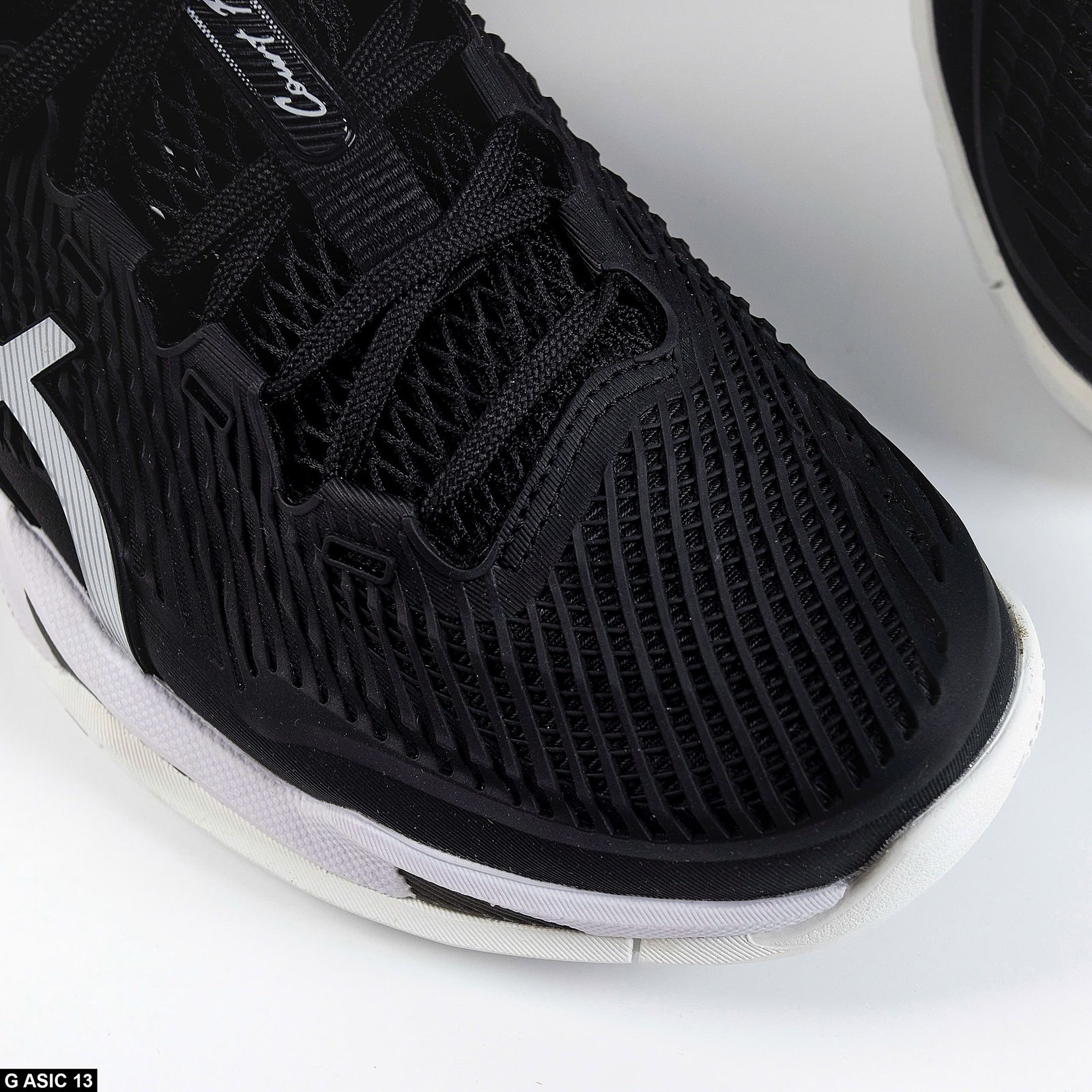 - White leather overlays are securely stitched and paired with standard laces for a stable and snug fit.